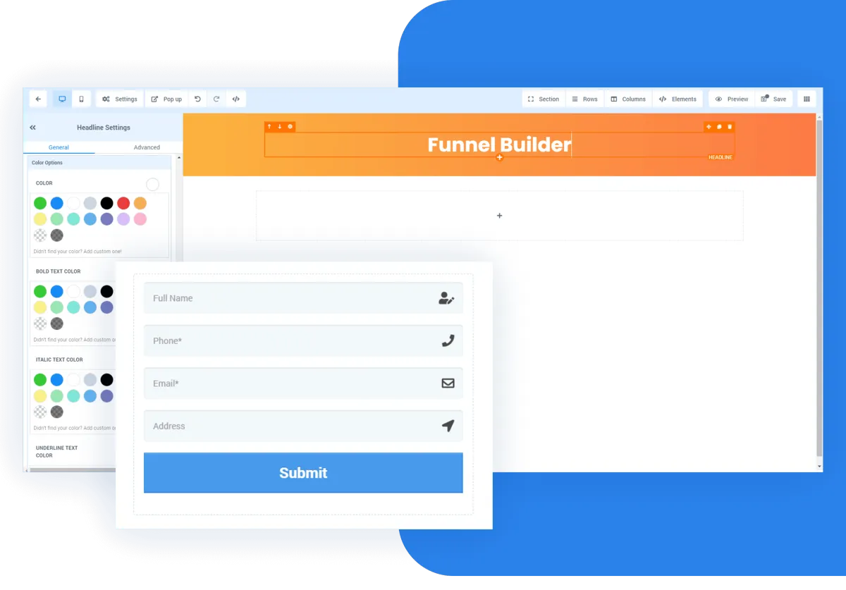 Utiliza nuestros creadores de formularios y embudos de arrastrar y soltar para crear páginas de aterrizaje que conviertan el tráfico en clientes potenciales que se almacenan en OB Leads.