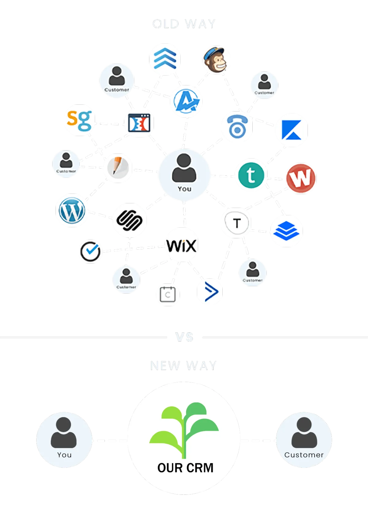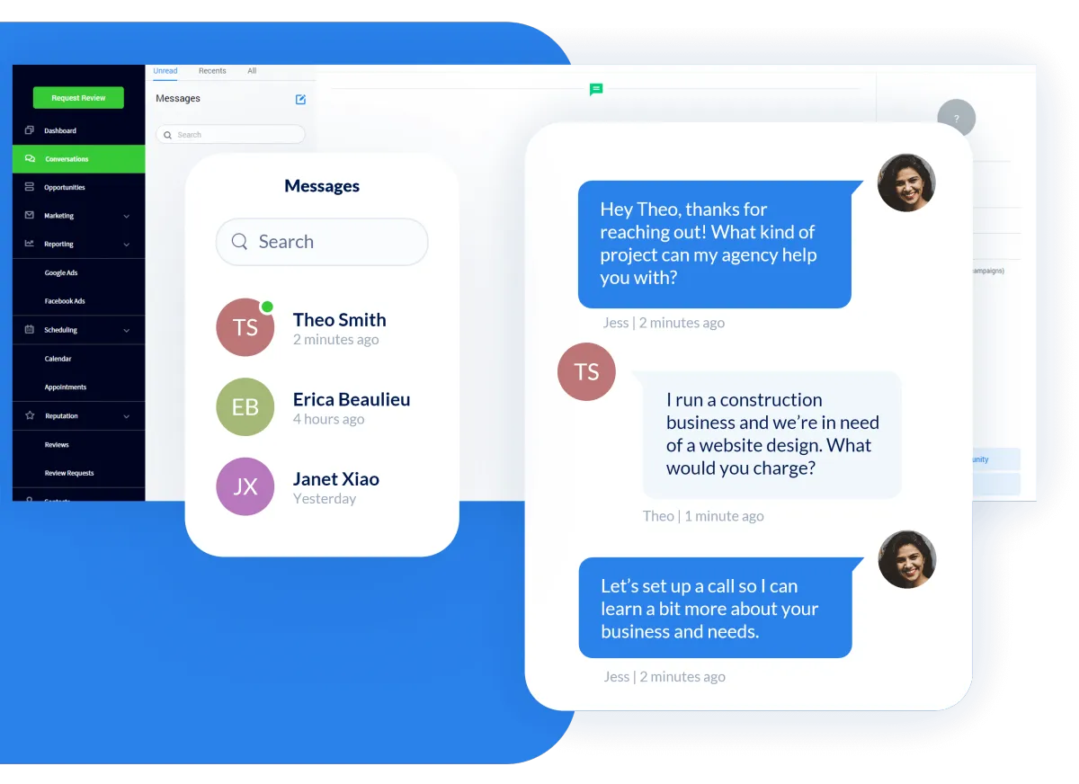 La primera plataforma construida para gestionar el seguimiento de un negocio, mensajes de texto bidireccionales, embudo de ventas, programación, y mucho más.